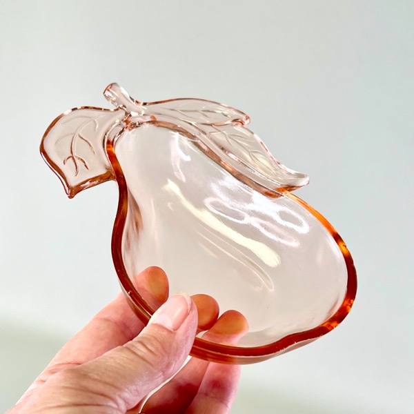 Lille pæreformet glasskål i fineste lyserøde farve.