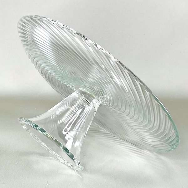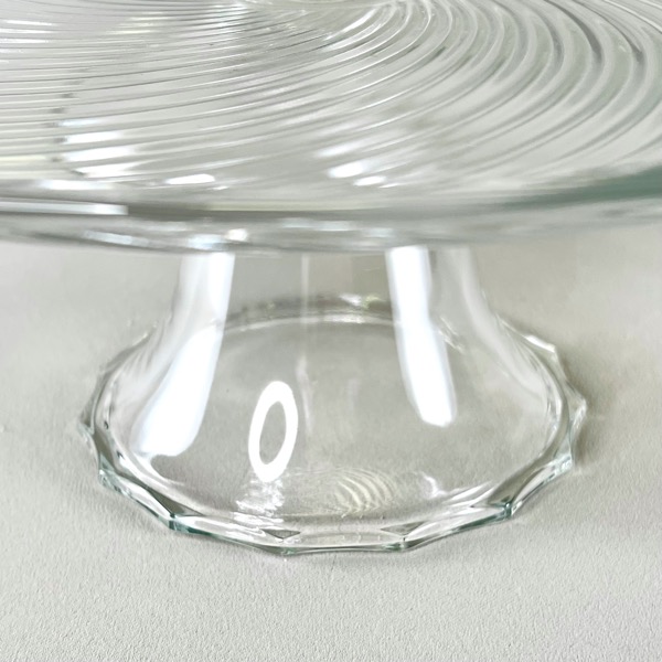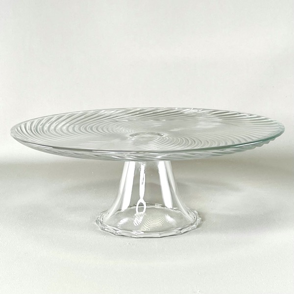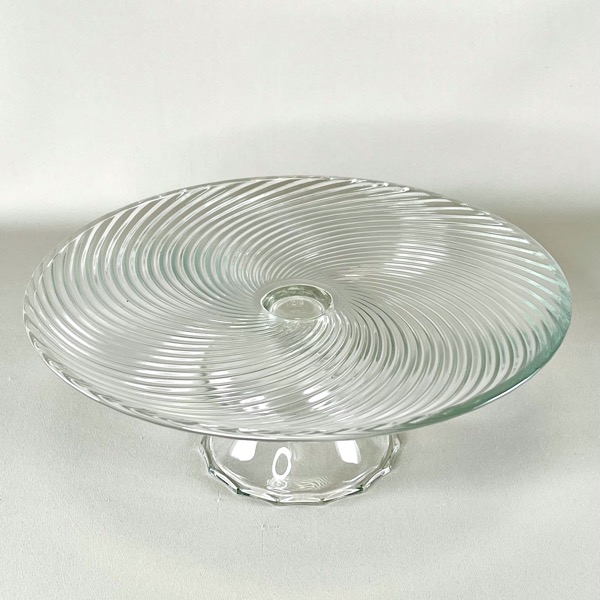 Flot lagkagefad på fod. Det er dekoreret med et fantastisk swirl mønster.