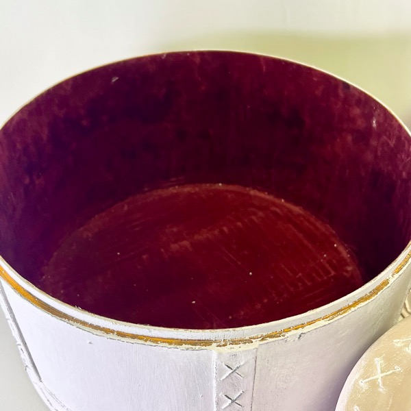 Æskerne passer indeni hinanden. Alle er beklædt med rødbrunt velour.