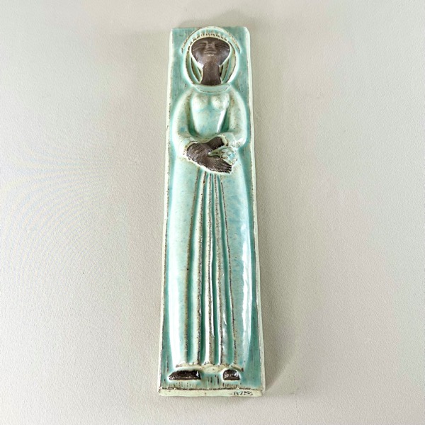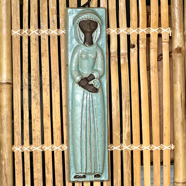 Smukt aflangt relief af kvinde i flot mintgrøn glasur.