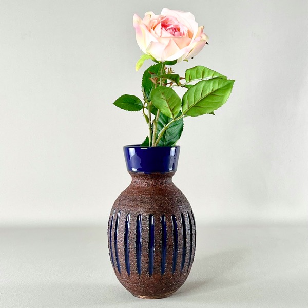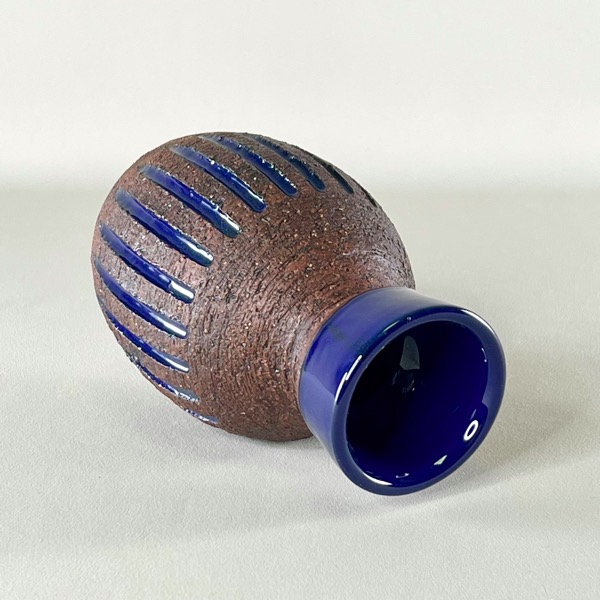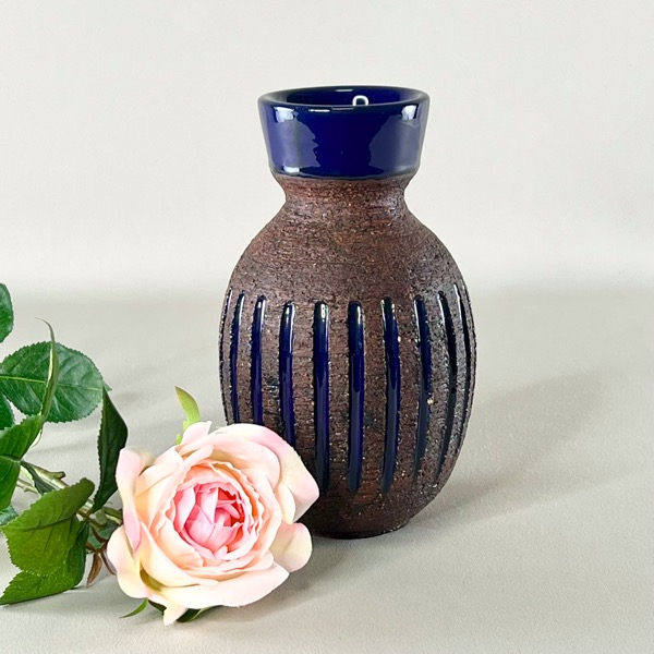 Skøn keramikvase med flotte kongeblå striber af Ingegärd Burmeister for Gabriel keramik.