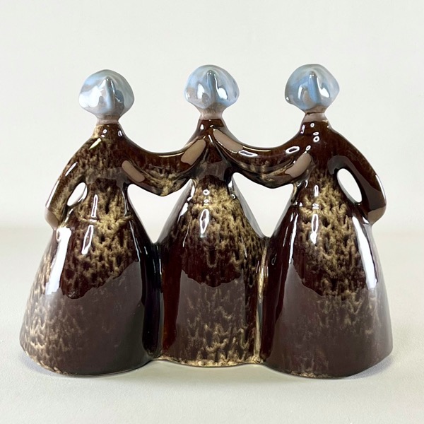 Helt vidunderlig figur af tre veninder eller måske trillinger - udført i keramik med den skønneste chokoladebrune glasur.