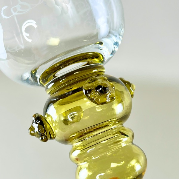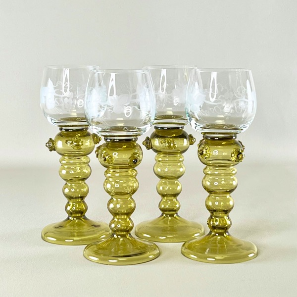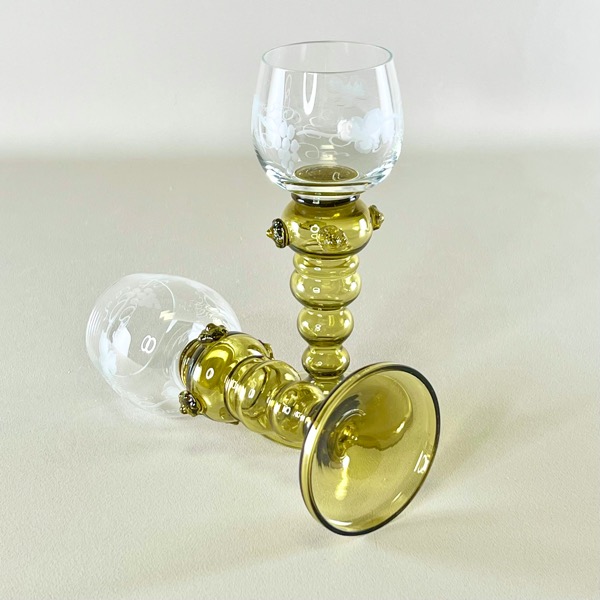 Smukke vintage Rømerglas på høj olivengrøn fod og klar kumme med ranker.