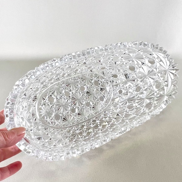 Rigtig smuk med stjernemønster, som bare nærmest glimter, når lyset falder på den. Selvfølgelig i klingende krystal. Wow!
