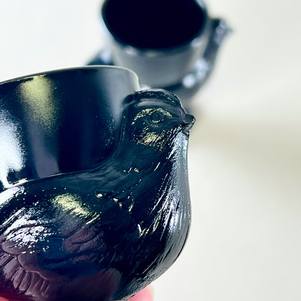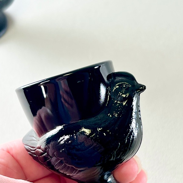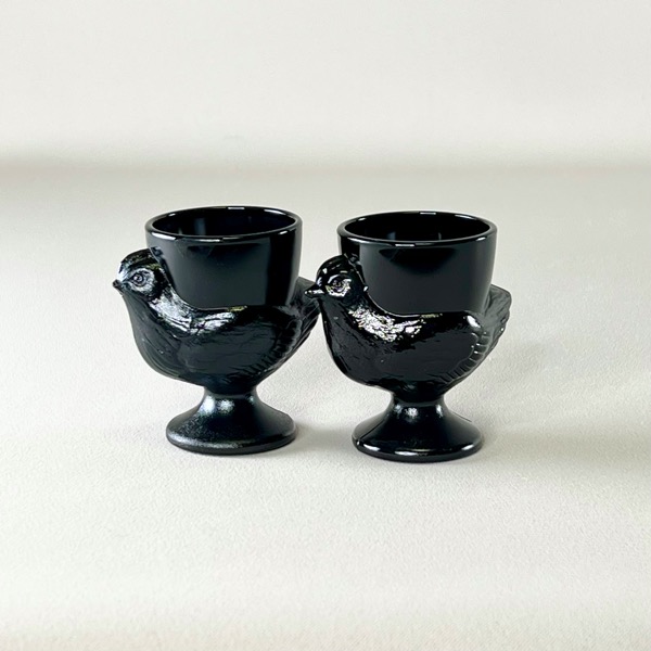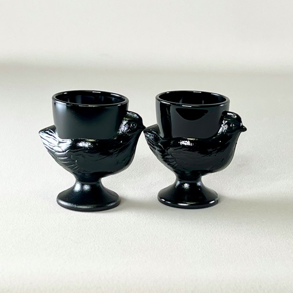Æggebægeret er udført i sort presset glas. En sjælden farve at finde.