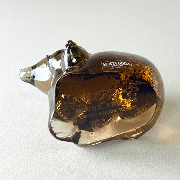 Smuk bjørn i brunt glas fra svenske Kosta Boda.