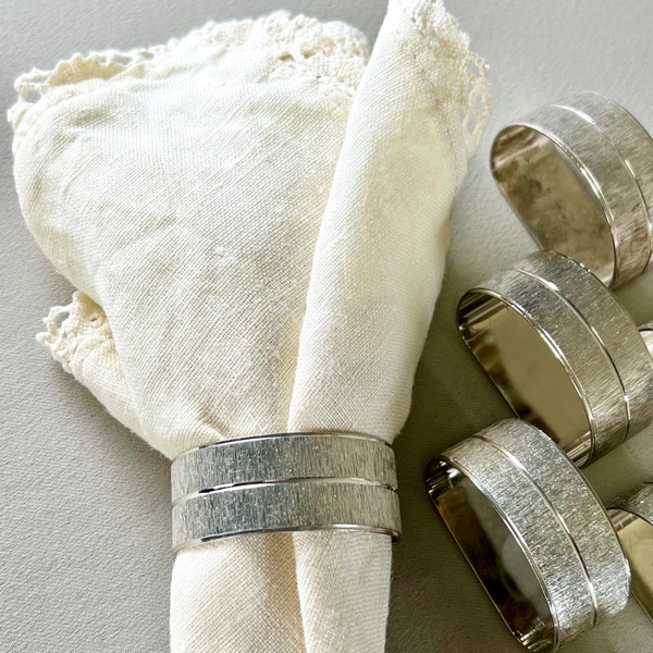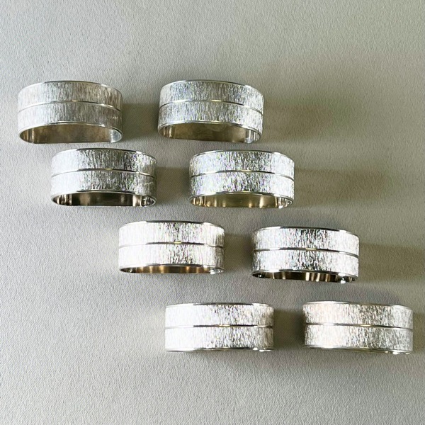 Utrolig smukke Sheffield servietringe som er buede på den ene side og ligger fint fladt på bordet/tallerkenen på den anden side.