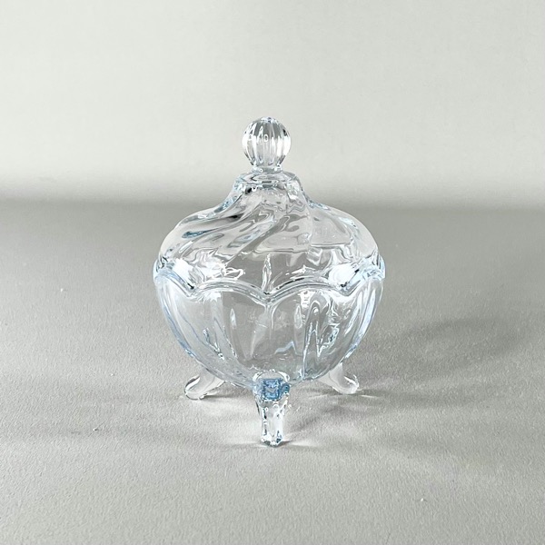 Fin lille lågkrukke på små fødder. Der er swirl effekt i låget, så fint.