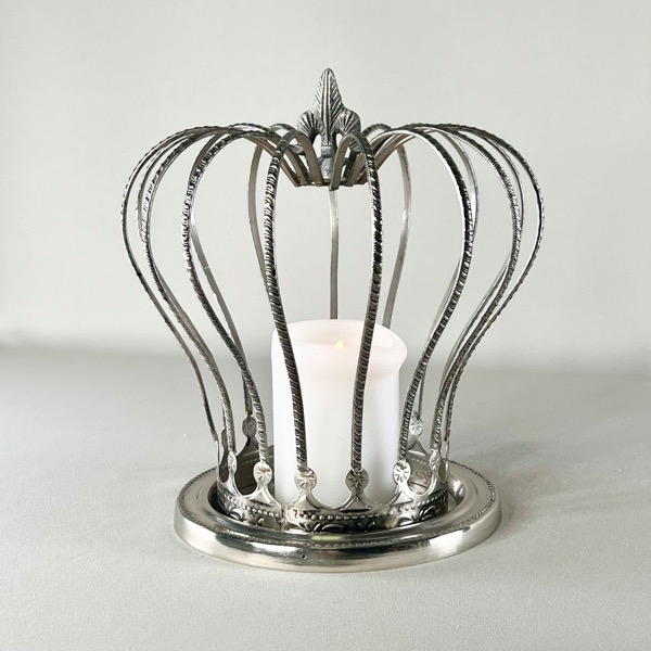 Den er rigtig fin til bloklys - måske helst LED, så kronen ikke bliver for varm. Kronen er også flot med en lille blomsterdekoration.