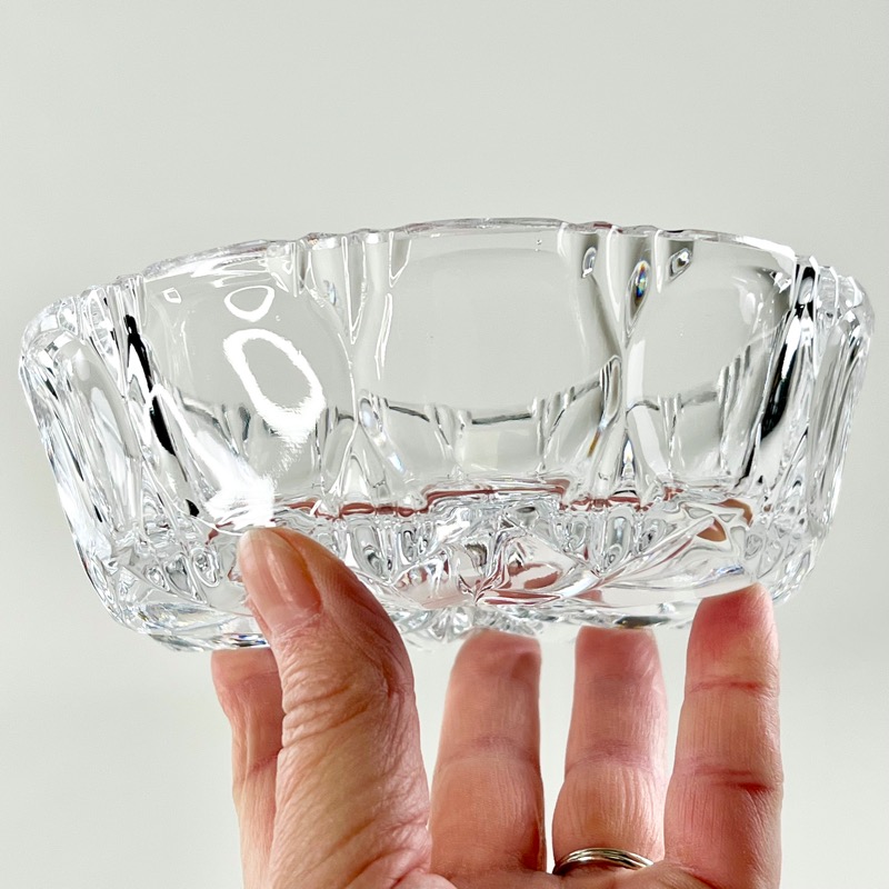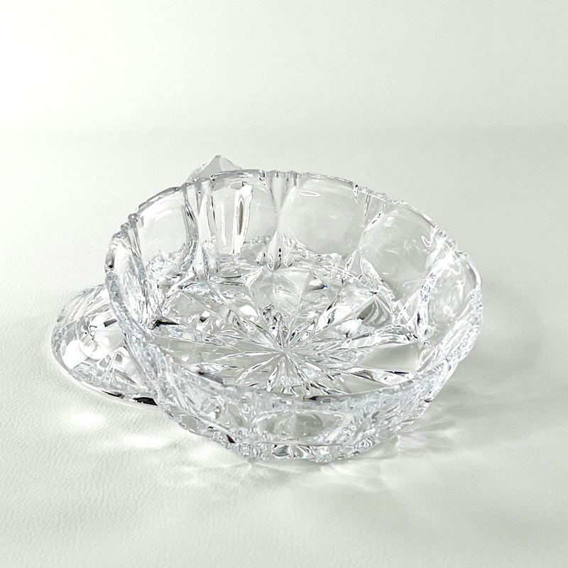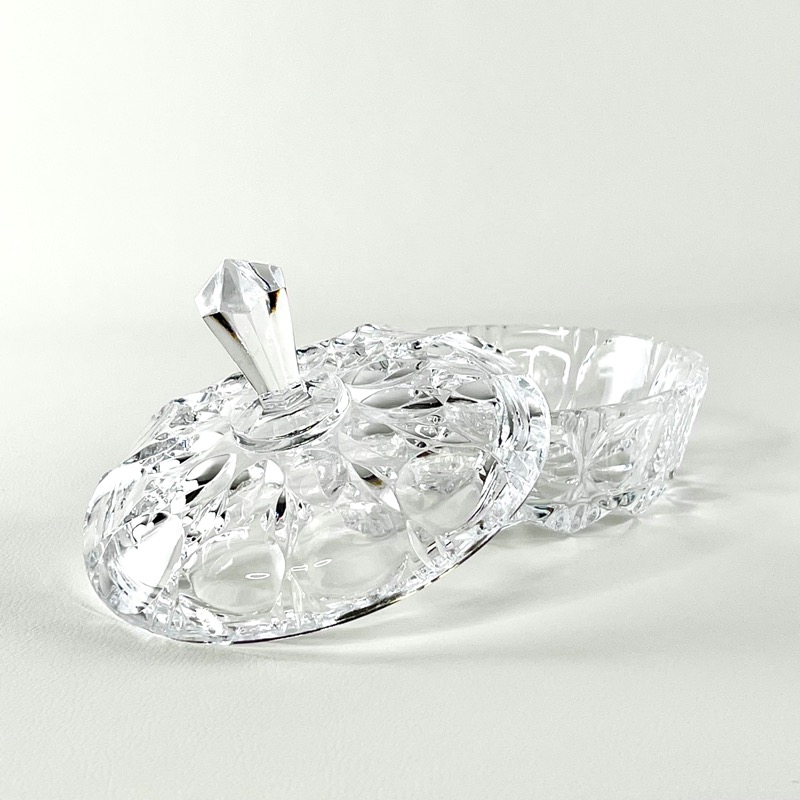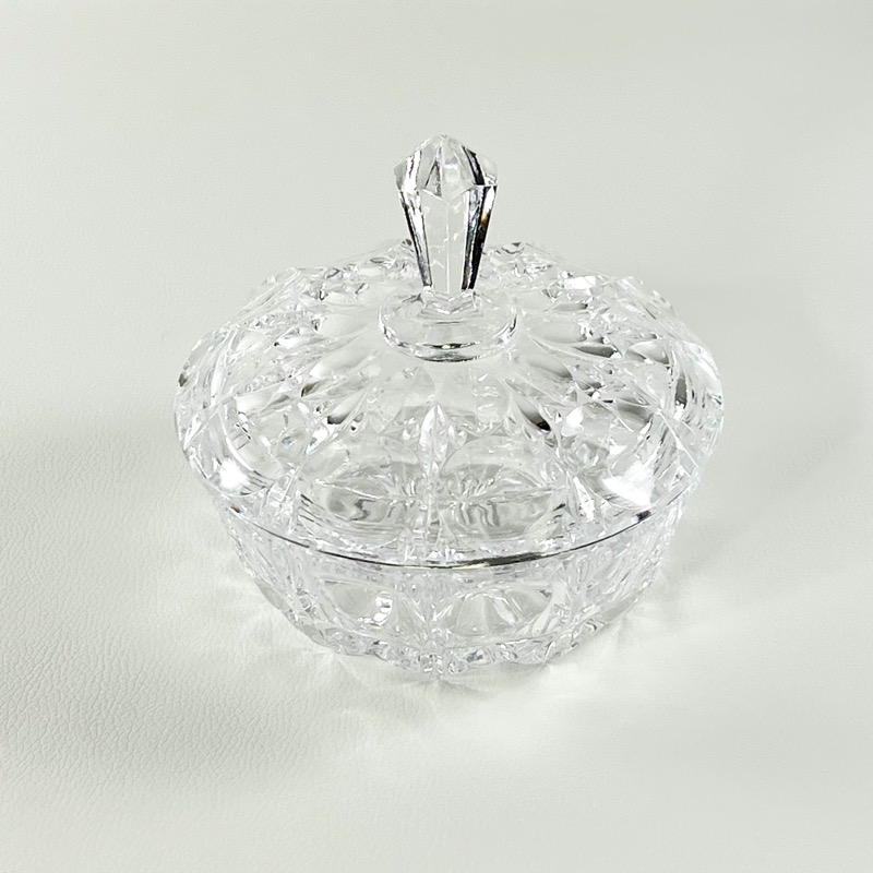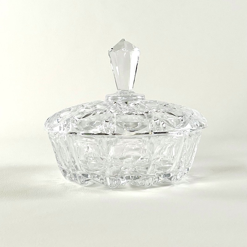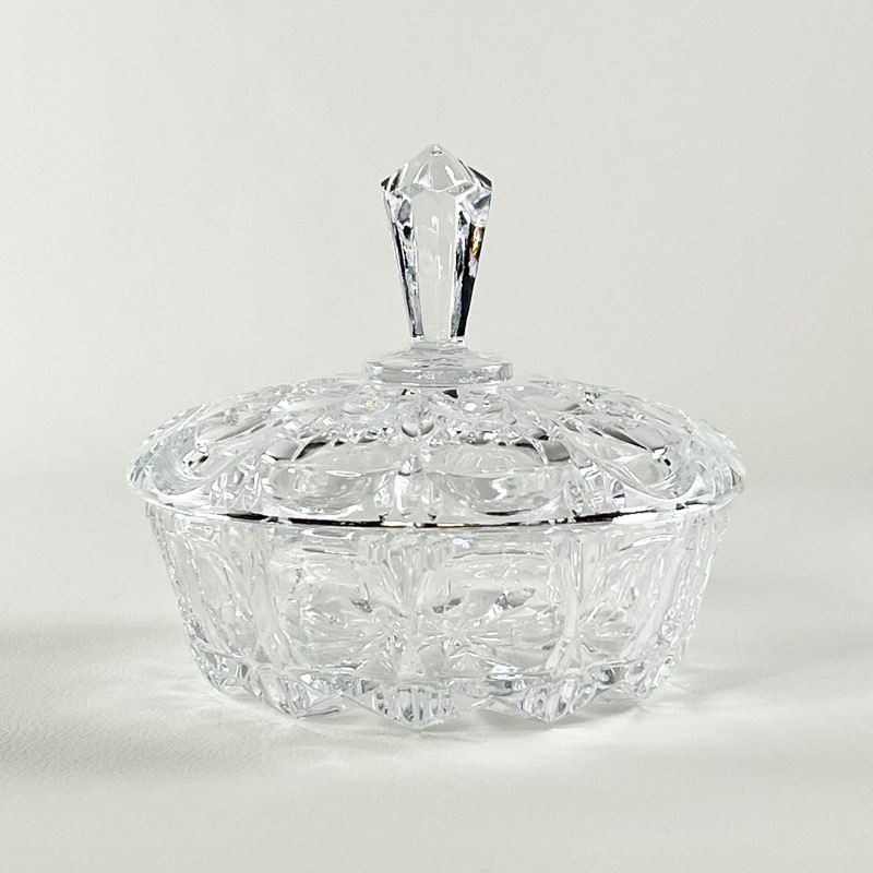 Stor bonbonniere i krystalglas. Krukken er lav men bred.