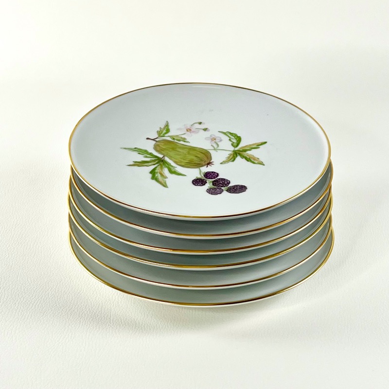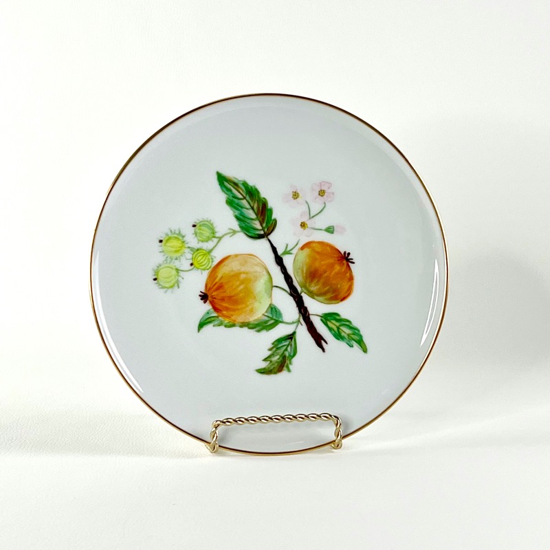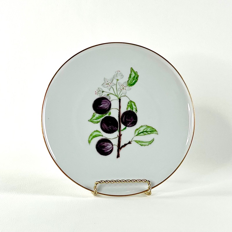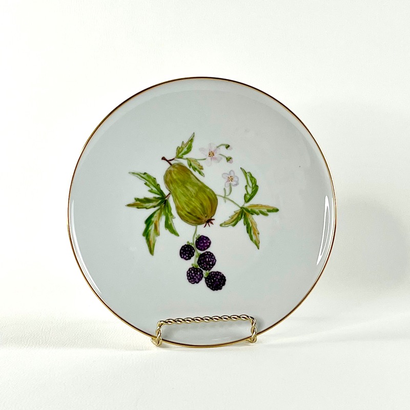 Charmerende tallerkener med forskellige frugtmotiver. De er håndmalede af "M.J." - originalt Bavaria porcelæn.