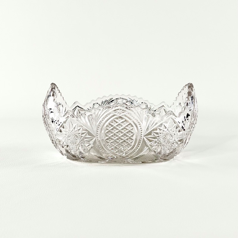 Fin ældre jardiniere i presset glas med masser af smukt mønster.
