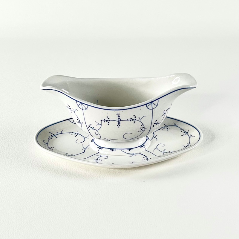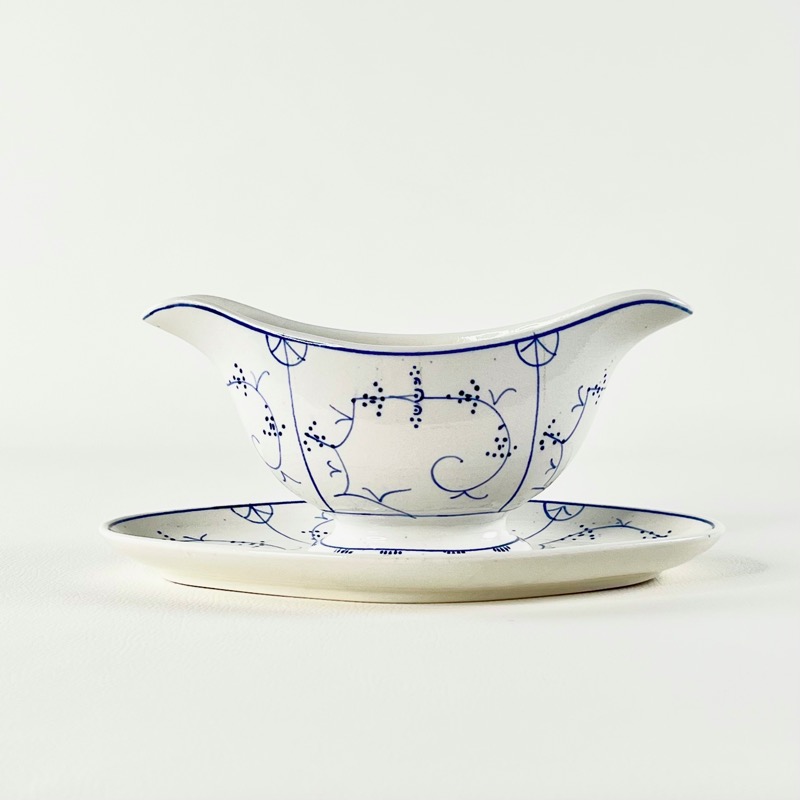 Flot vintage musselmalet sovseskål på fad fra Villeroy & Boch.