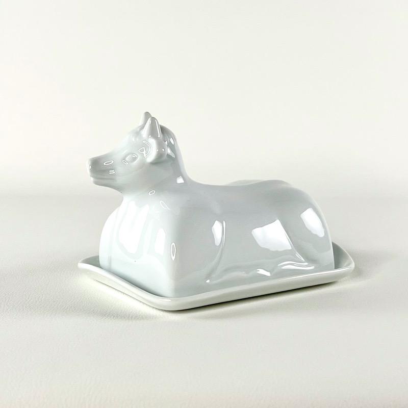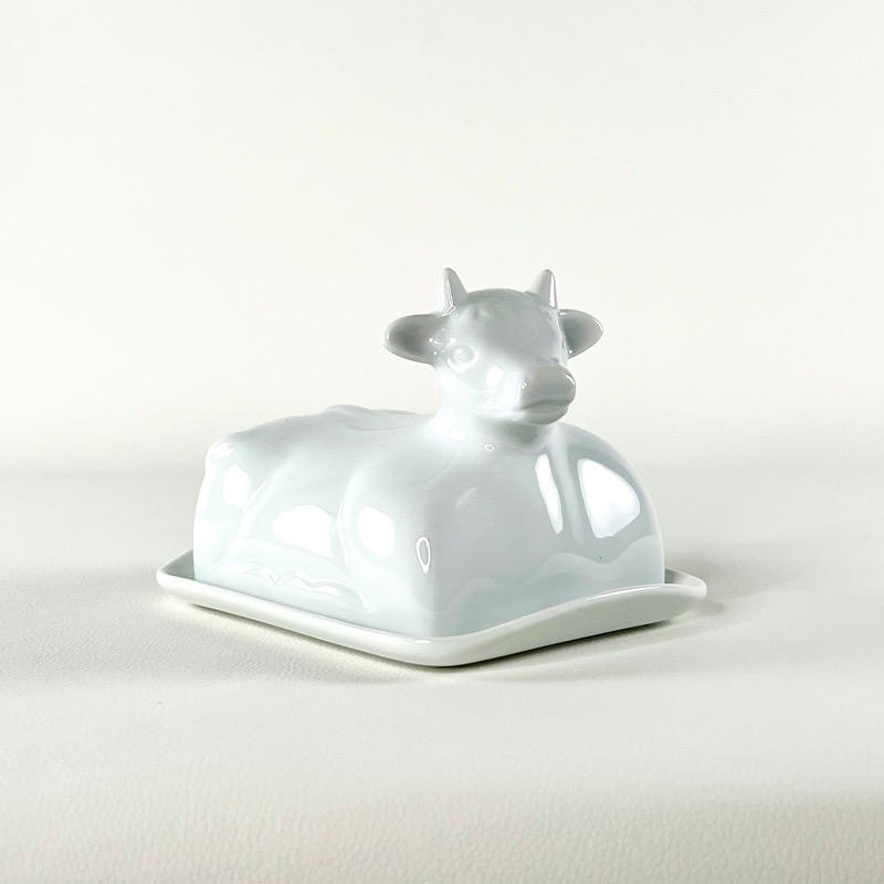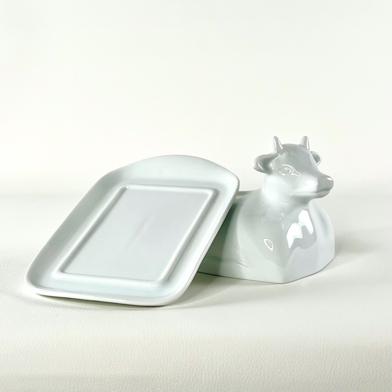 Denne skønne smørboks er i hvid porcelæn med ko-formet låg.
