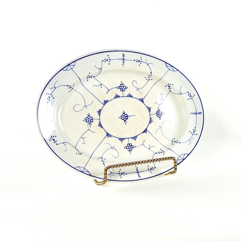 Charmerende gammelt serveringsfad fra Villeroy & Boch. Hvid fajance med fint musselmalet blå streg.