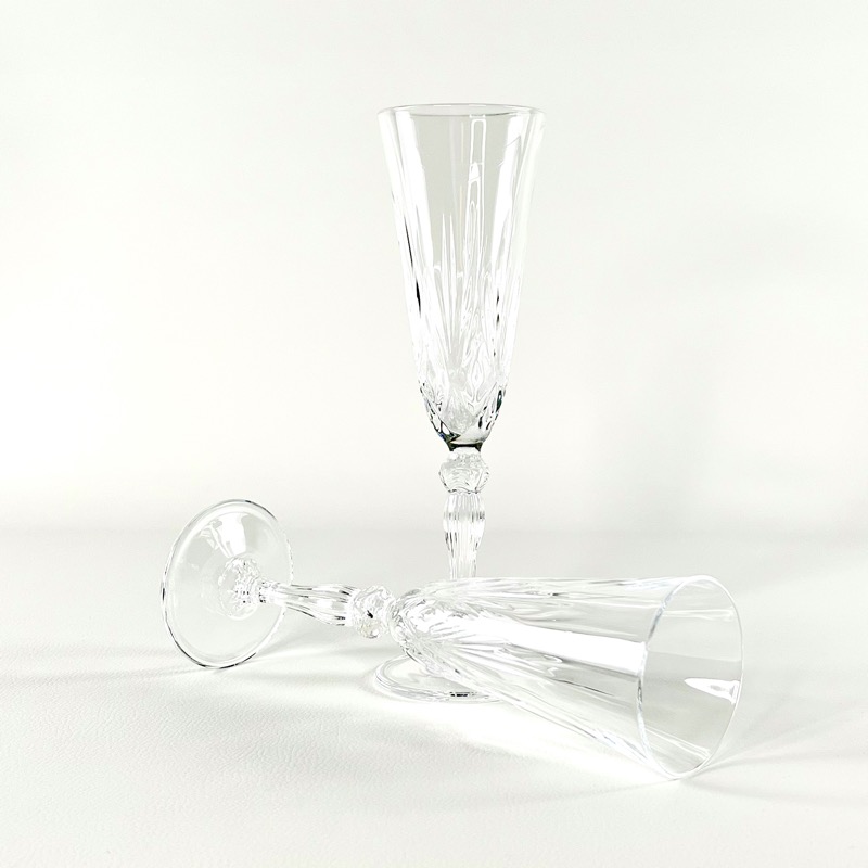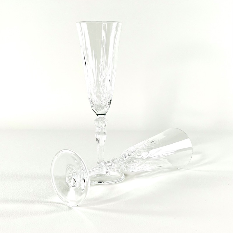 Smukke høje champagneglas i krystalglas fra Lyngby Glas i serien Melodia.