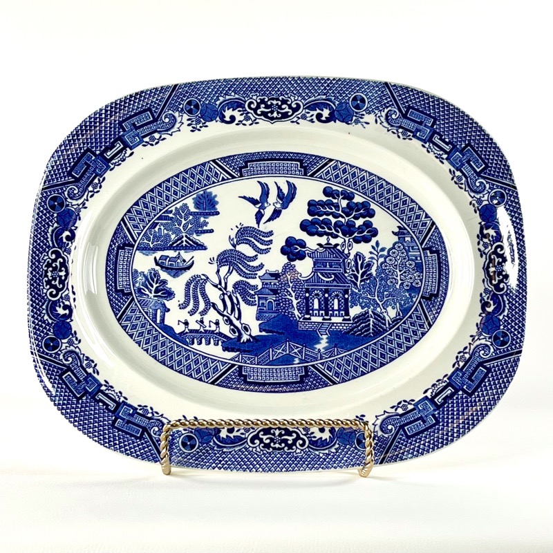Smukt stort serveringsfad i engelsk porcelæn. Serien er Willow fra Wood & Sons.