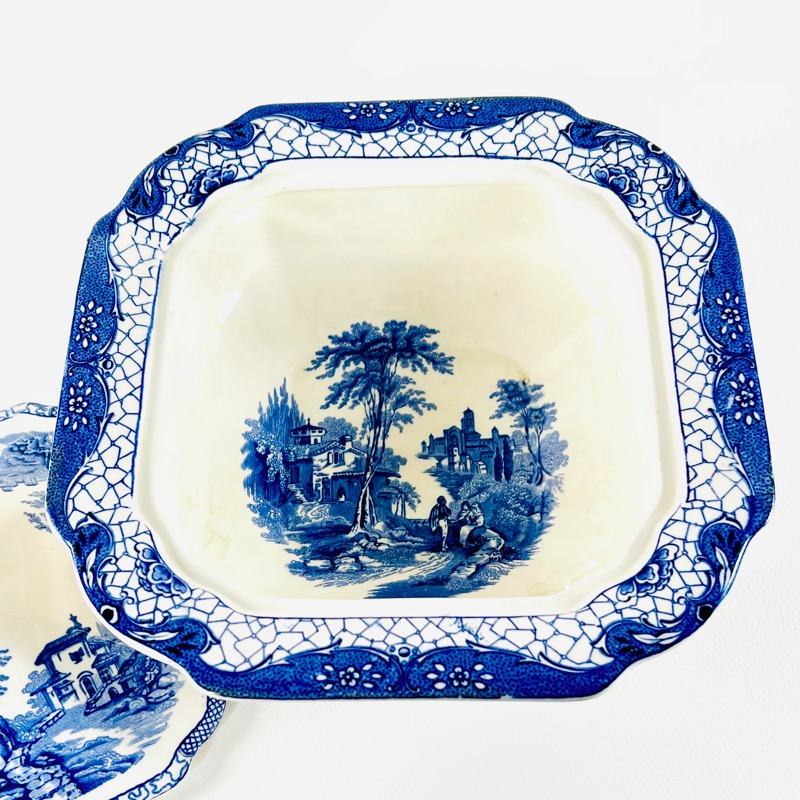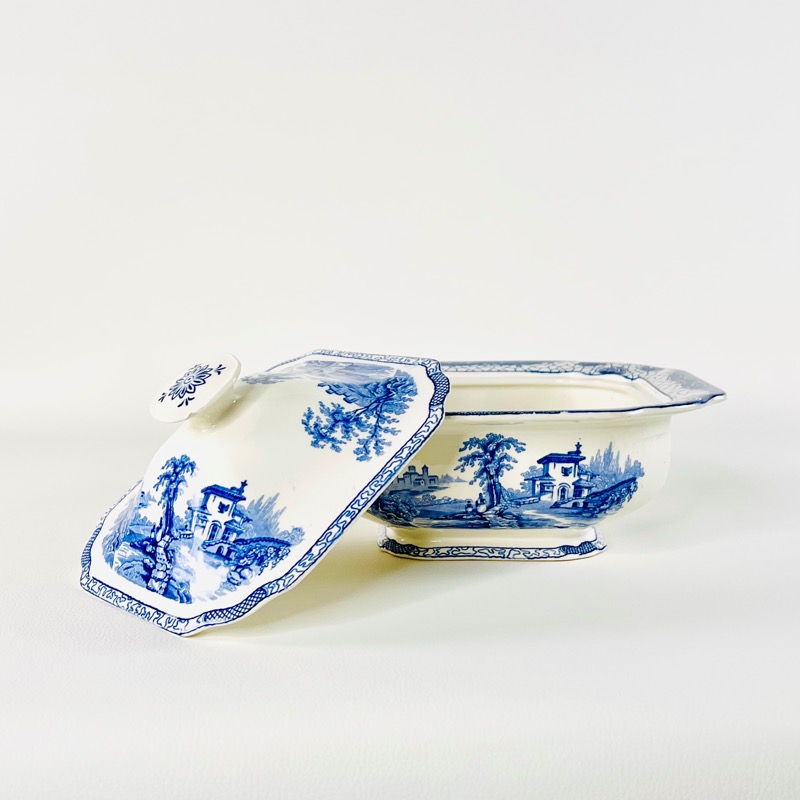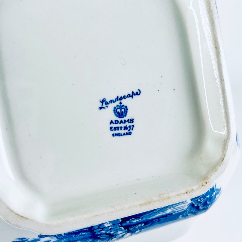 Smuk firkantet terrin med låg. Engelsk porcelæn. Serien er Landscape fra Adams Pottery i Staffordshire, England.
