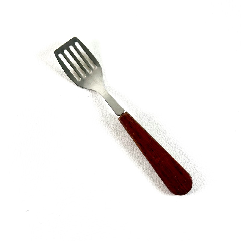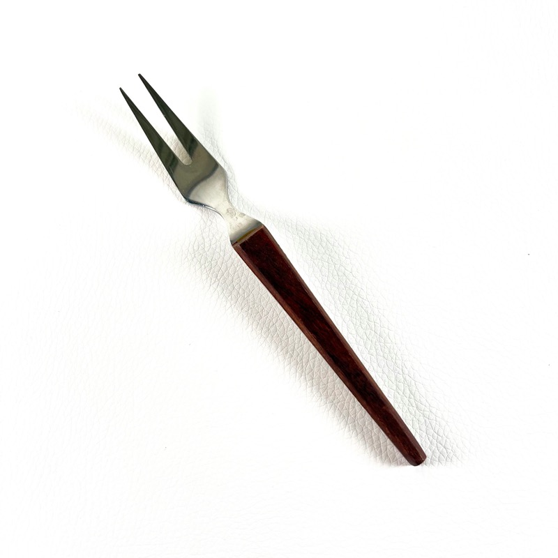 Nr. 4 - pålægsgaffel med teak greb på front. Rustfri stål. Japan. Mål ca. L16 cm.