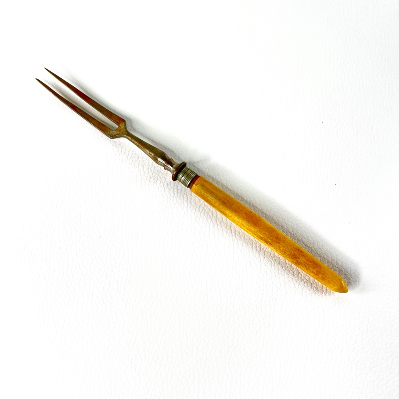 Nr. 7 - vintage pålægsgaffel med greb i ben. Mål ca. L20 cm.