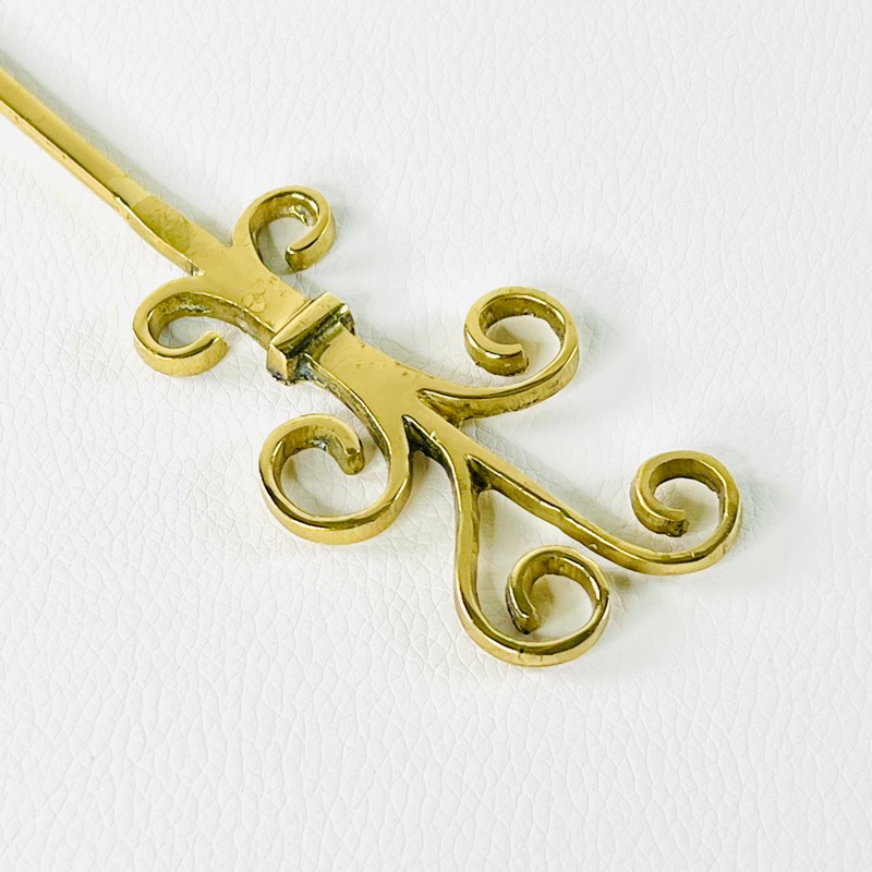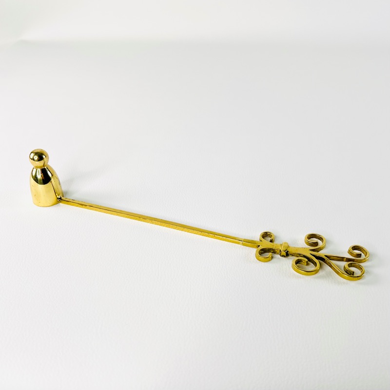 Elegant lyseslukker i messing. Hovedet er fast. Skaftet har fine krummelurer.