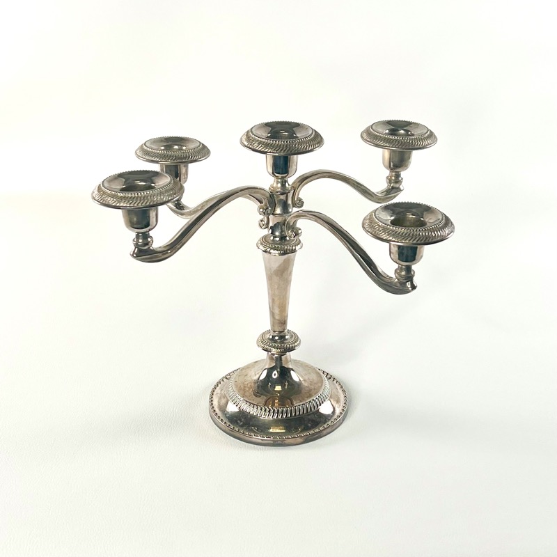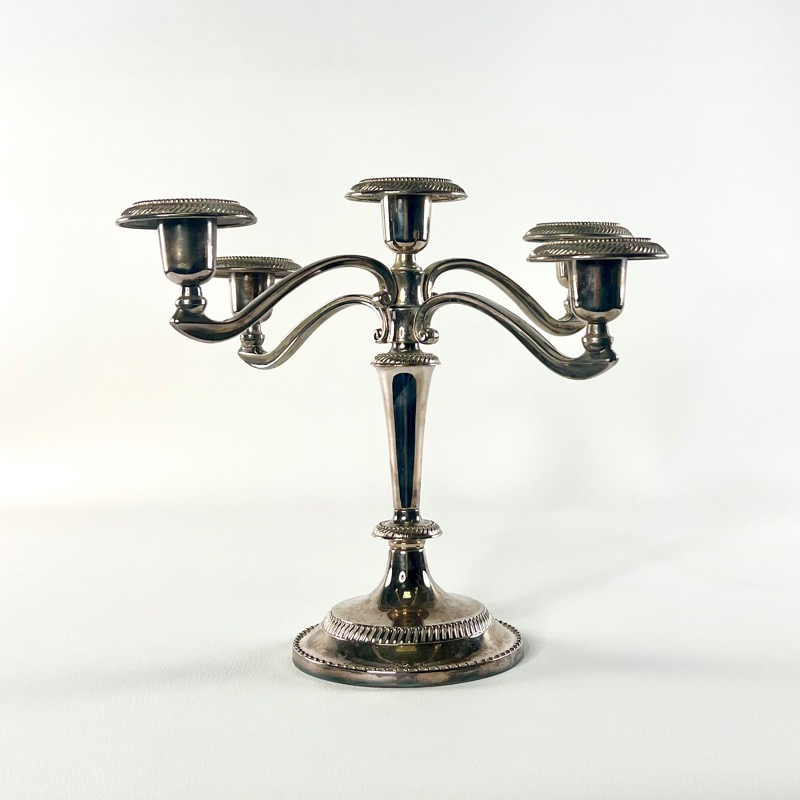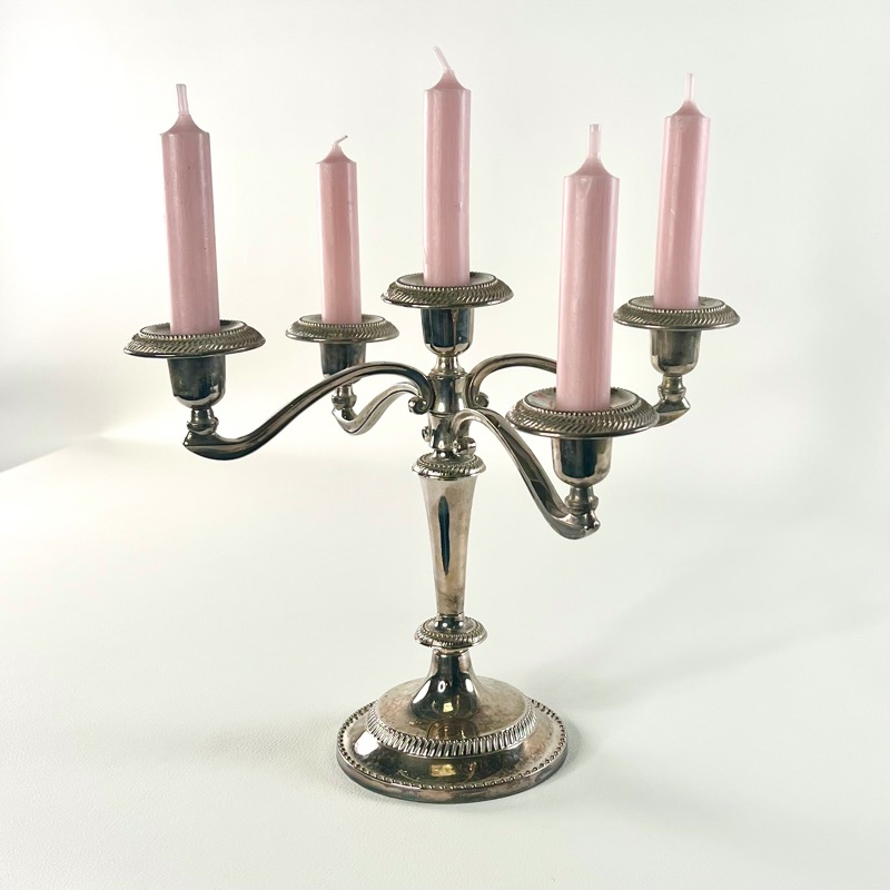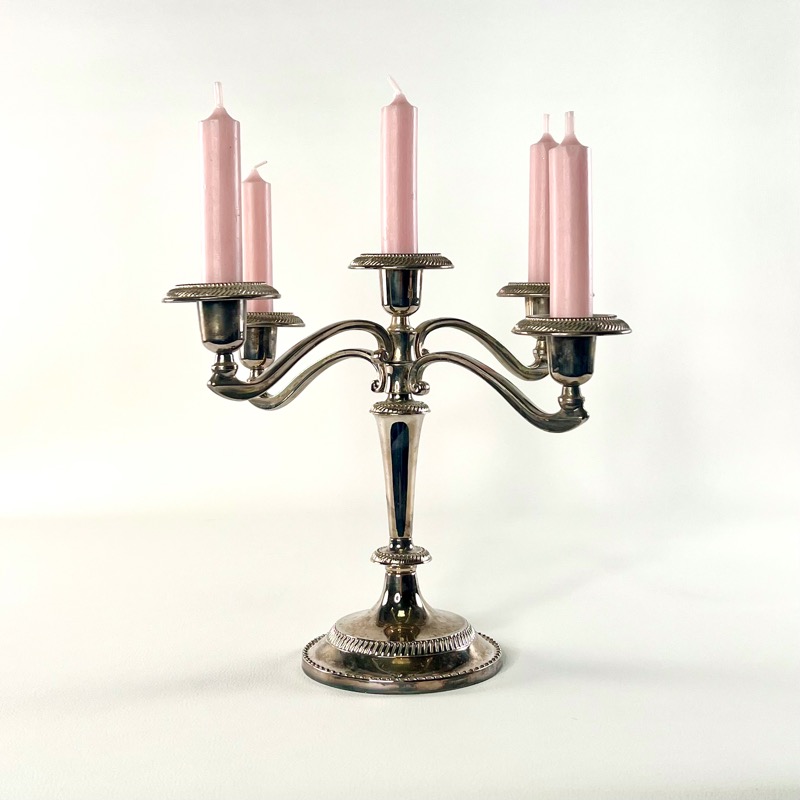 Stor femarmet lysestage i sølvplet. Den gør altid et bord ekstra festligt.
