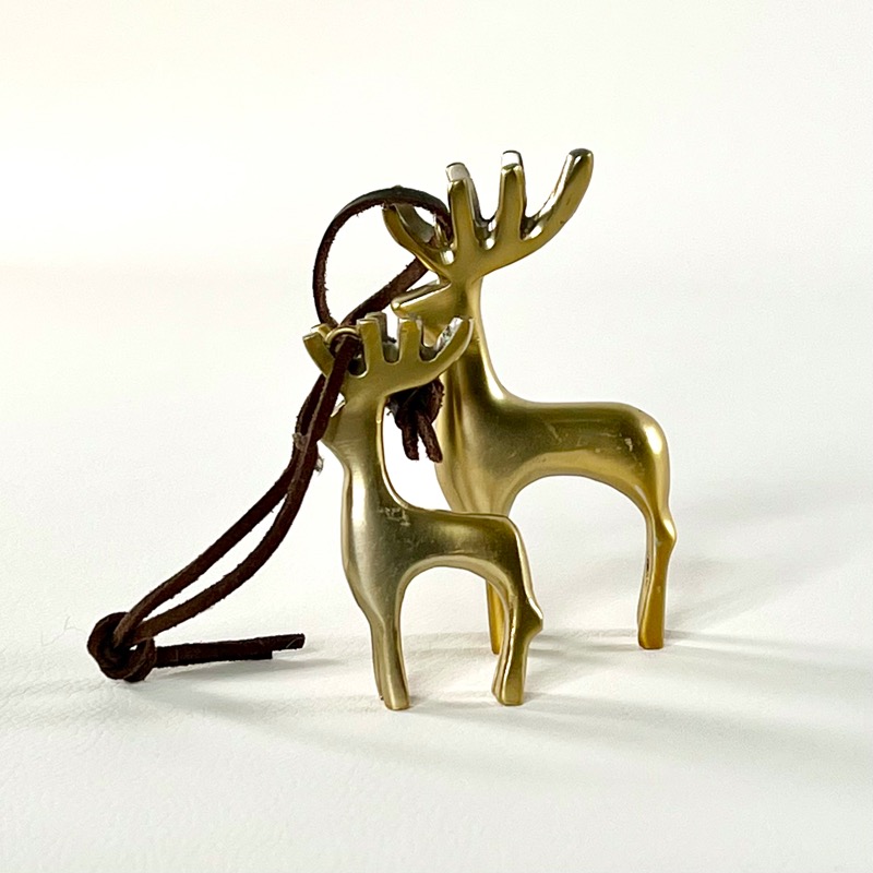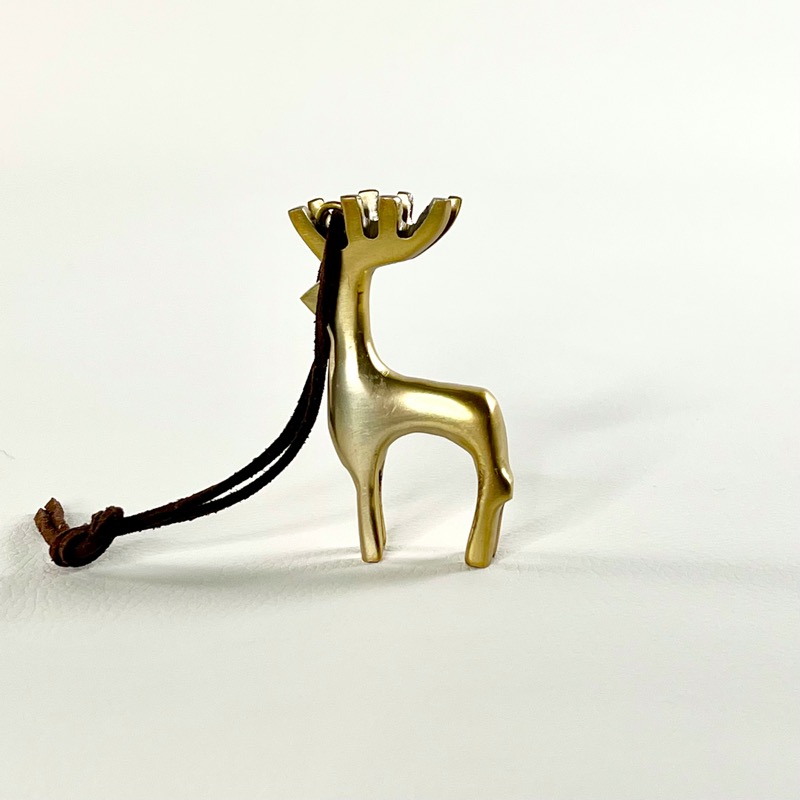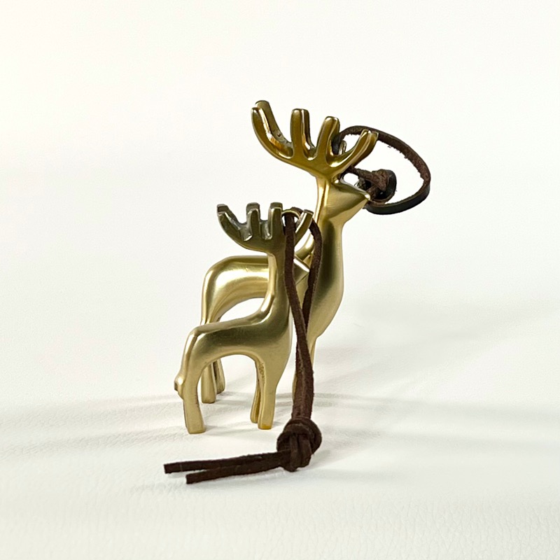 Fine kronhjorte i børstet messing med lædersnor.