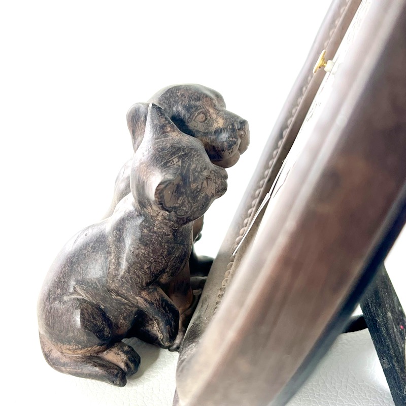 Der er en hund og en kat, som sammen ser på at tiden går - måske de venter på spisetid.