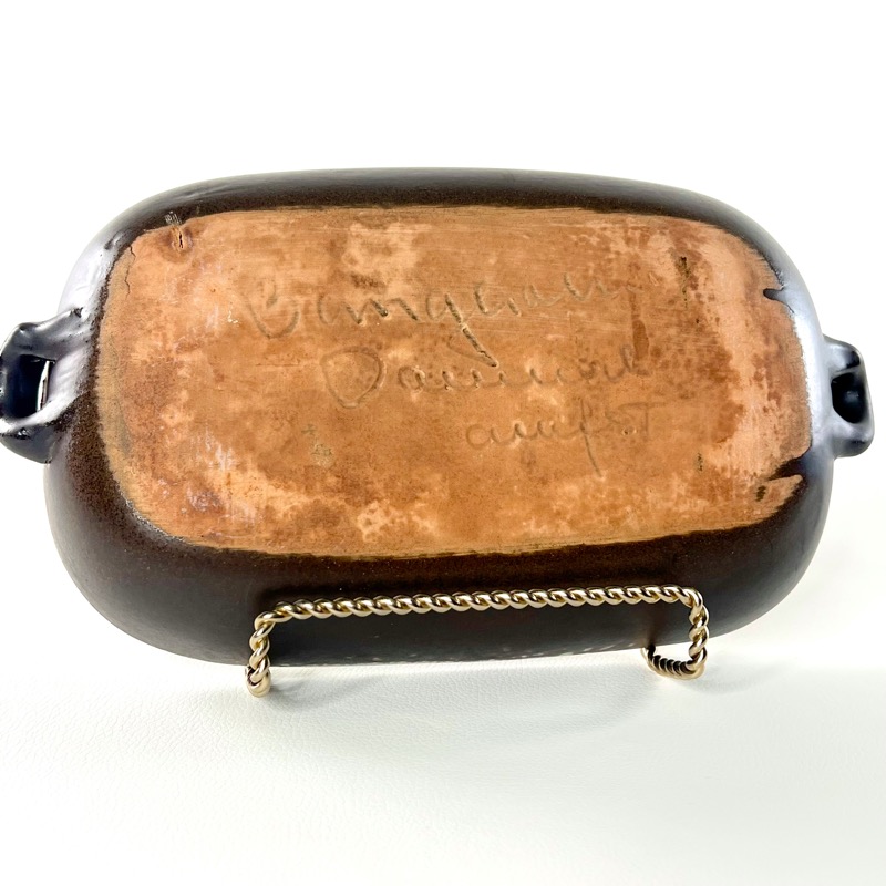 Lidt historie: Bangholm blev grundlagt i 1948 i Skødstrup nær Århus af Knud Nielsen og hans far, som også var keramiker. Produktionen bestod primært af huslige og brugbare genstande til hjemmet. Det nåede toppen af popularitet i 1950'erne og 1960'erne og blev kendt for sin farverige fajanceglaserede terrakottakunsthåndværk, som stadig er populært på genbrugsmarkedet.