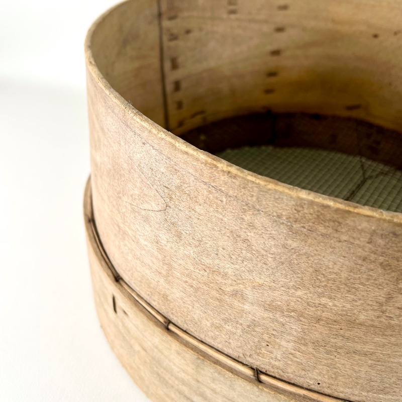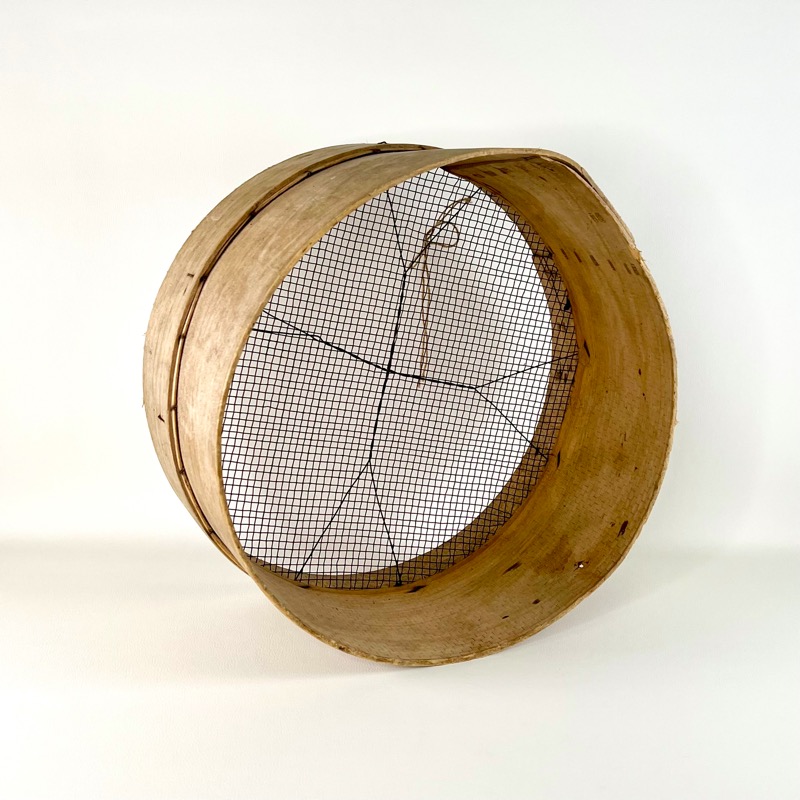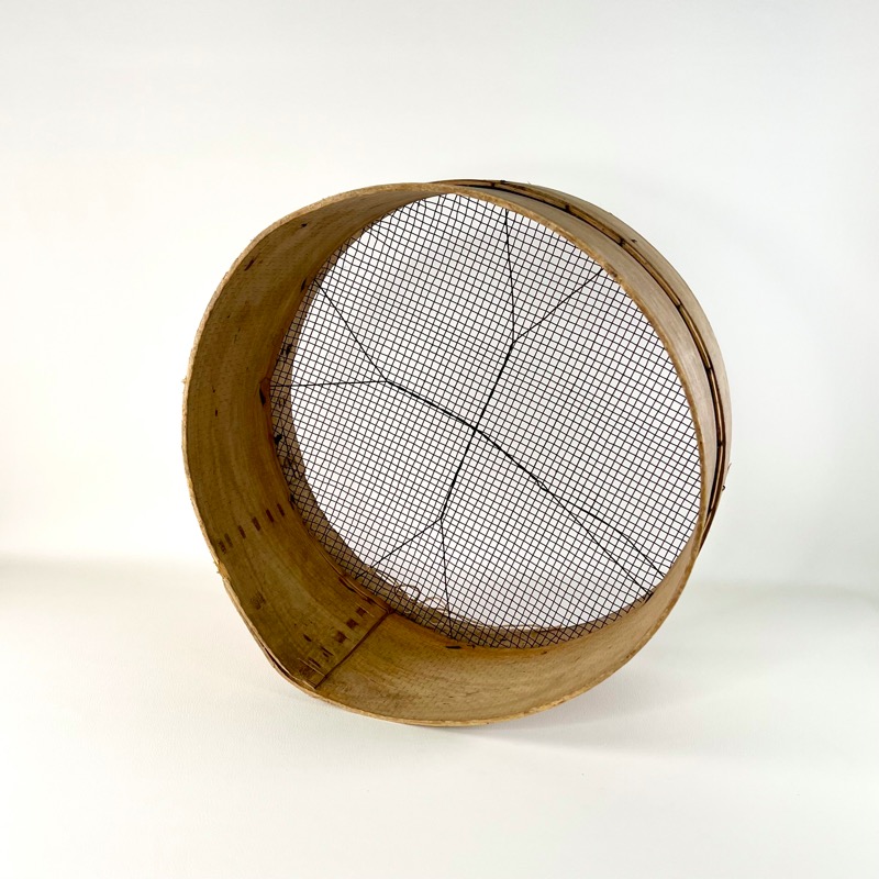 Charmerende gammel rund sigte med fint net i bunden og på træramme.