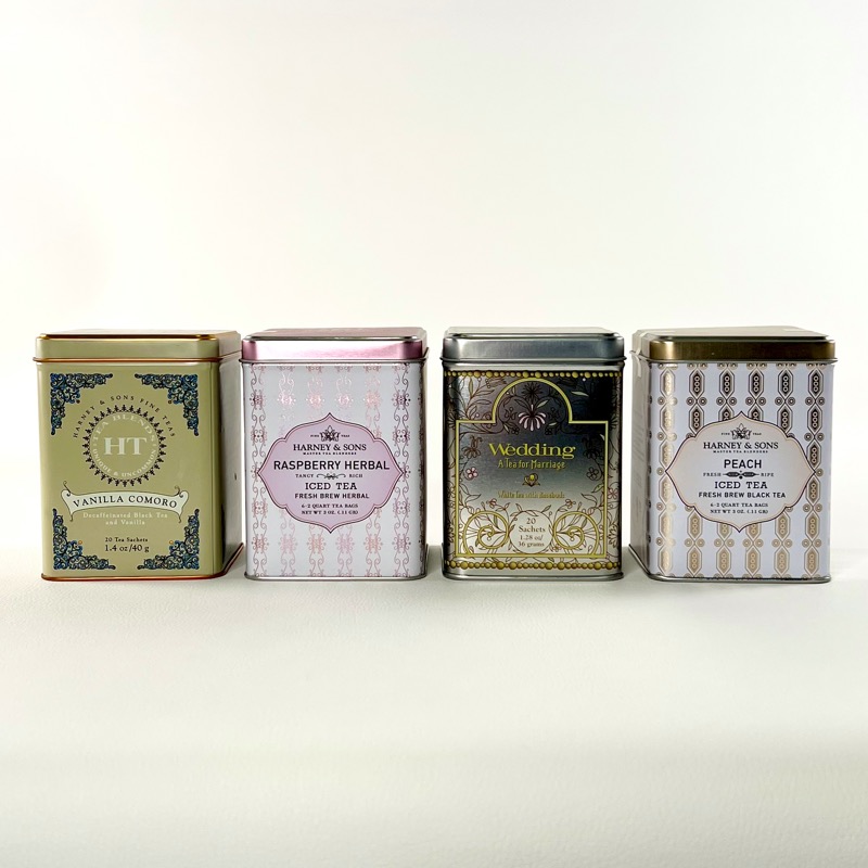 Fine tedåser i metal fra Harney & Sons.