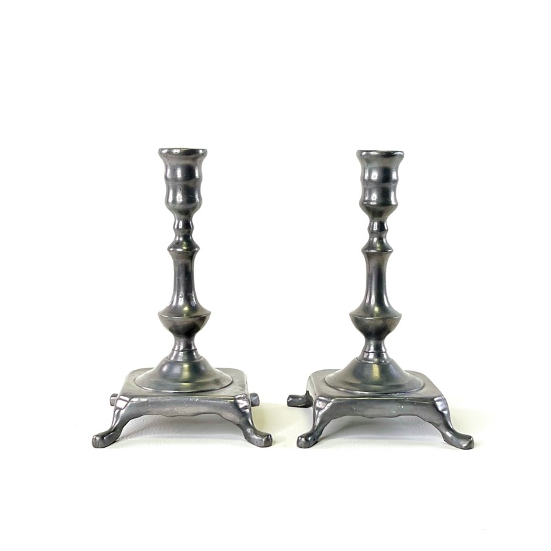 Flot lysestage par i tin. Fine klassiske former.