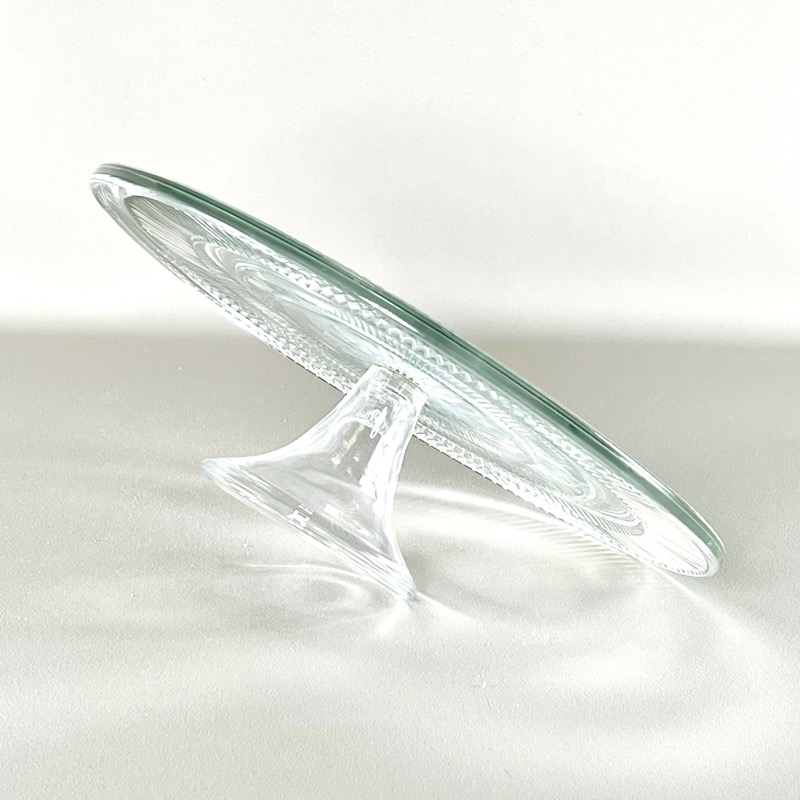 Fadet er dekoreret med bred swirl som skifter mellem klart glas og riller. Næsten som et sneglehus.