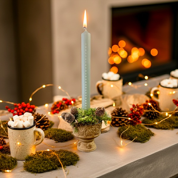 Den er så fin at lave juledekoration i - på sidste billede kan du se en døbefont med kalenderlys (ikke døbefont nr. 2).