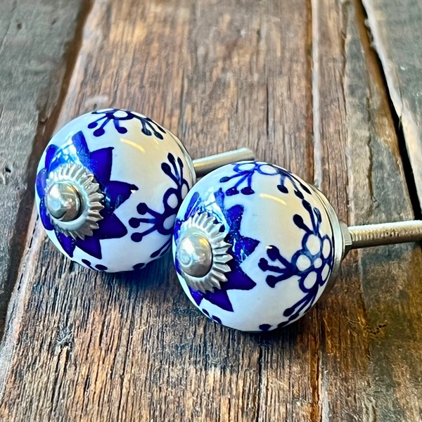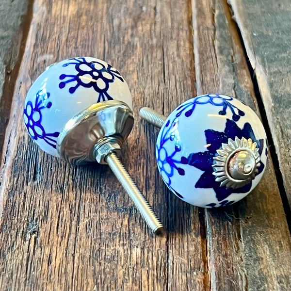 Møbelknop i porcelæn og med flot blåt mønster i musselmalet stil.