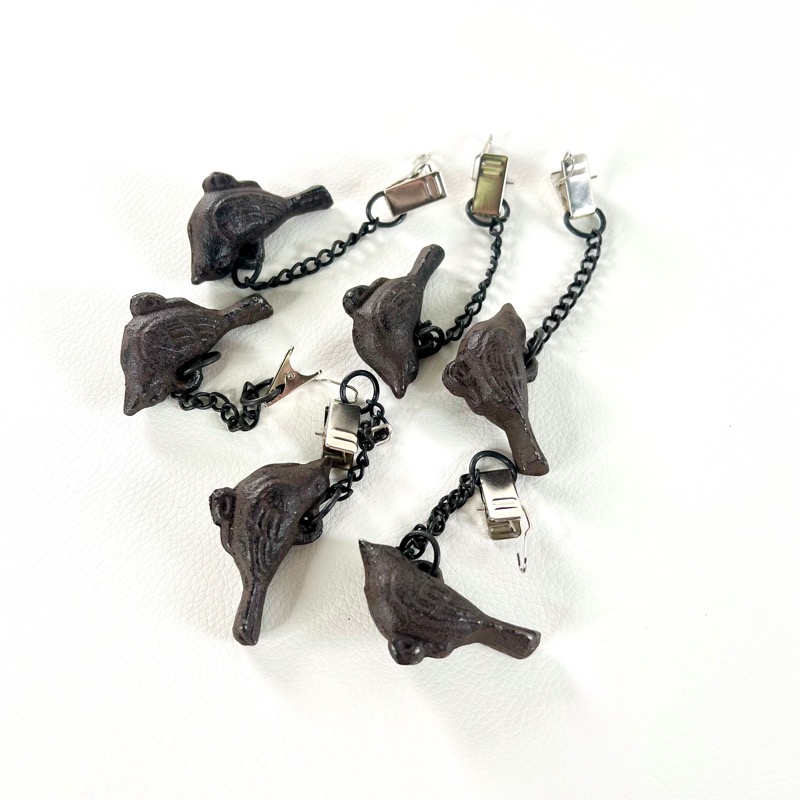 Fine dugholdere i bruneret metal med kære små fugle.