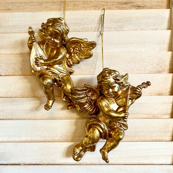 Udført i gyldent plast. Med ophæng, så de kan hænge på træet eller rundt omkring i dit hjem for en hyggelig julestemning.