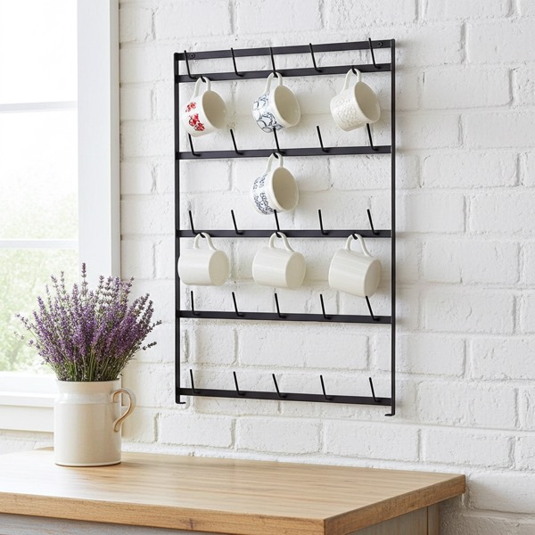Brug eksempelvis ophængsstativet i køkkenet til krus, kander, køkkengrej, viskestykker osv. I entreen kan den fint bruges til tørklæder, nøgler og handsker - eller i drivhuset til potter og redskaber.