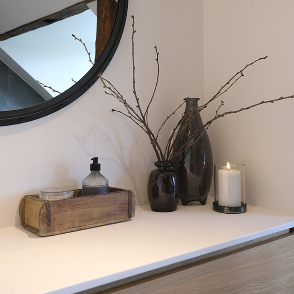 Murstensform med patina i genanvendt træ, som passer perfekt ind i alle hjem med en rustik stil.