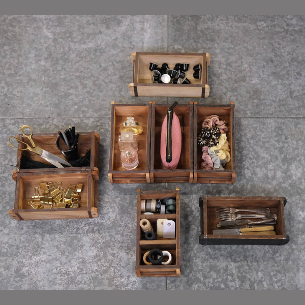 De dekorative forme passer fint ind på badeværelset til make-up eller sæbe, i køkkenet til olier eller friske krydderier, i stuen til lys eller strikketøj eller måske et sted hvor du mangler en rustik opbevaring. Formene kan hænges op på væggen, som små reoler. Mulighederne er uendelige.