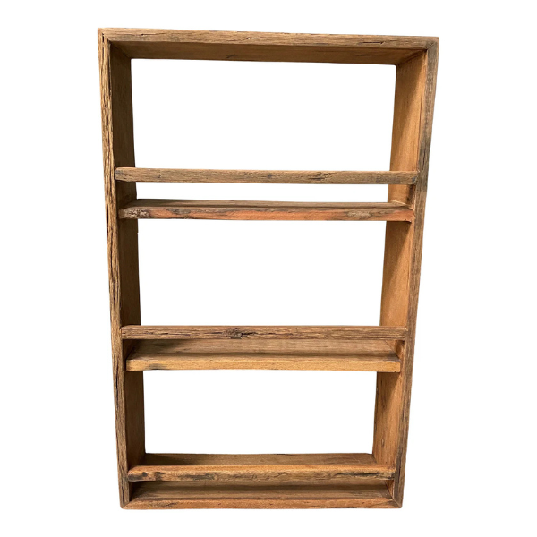 Vi tror på genbrug. Hylden er lavet i genbrugt og gammelt træ. Træet indsamles og kommer ofte fra gamle huse, stilladser og gamle skibe. Nu får det smukke gamle træ nyt liv her hos os i form af en hylde. Hylden kan være lavet af forskellige træsorter, da der er tale om gammelt indsamlet træ. Alle er dog sorter af hårdt træ.