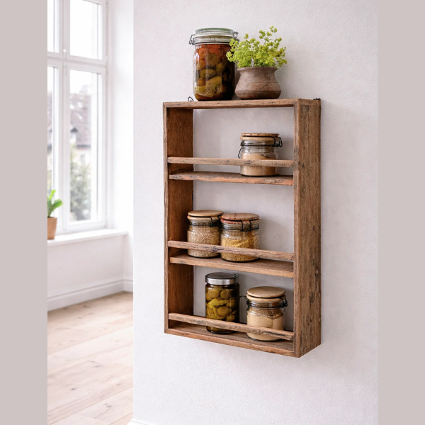 Rustikt Væghylde: Tidløs Charme i Genbrugstræ.